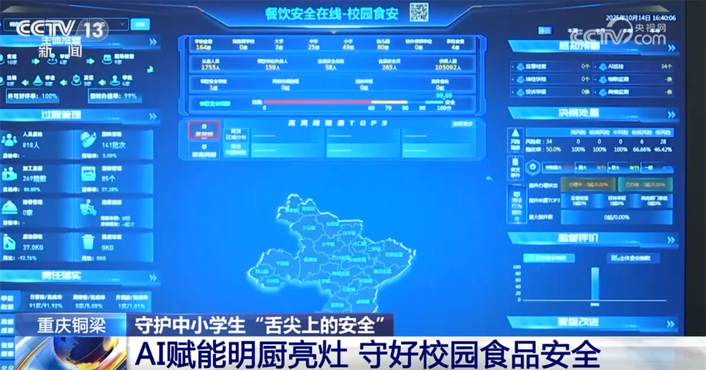 此外,铜梁区还鞭策“互联网+明厨亮灶”升级,通过AI智能抓拍食堂从业人员没有佩带口罩、帽子等违规操做行为,并及时通过语音播报进行提示,避免食材加工环节容易呈现的不卫生等问题,守好食物平安。铜梁区的无效做法,是沉庆抓“校园餐”问题整治的典型代表。按照全市的同一摆设,各区县因地制宜鞭策,让“校园餐”办理向精细化改变。目前,沉庆所有公办中小学、长儿园的炊事经费已纳入财务代管资金账户或教育行政部分开设的伙食费账户从严进行办理,大部门平易近办中小学、长儿园已开设食堂特地银行账户进行专账核算。进一步完美食材采购办理轨制,沉庆全市39个区县中已有37个实现公开采购。