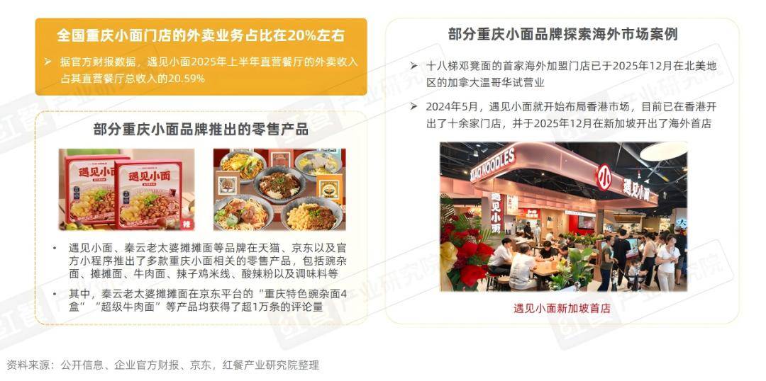 此外,部门沉庆小面品牌还积极摸索海外市场。好比,十八梯邓凳面已于2025年12月正在开出了首家海外加盟门店;而碰见小面不只正在结构十余店,也于2025年12月正在新加坡开出了海外首店。