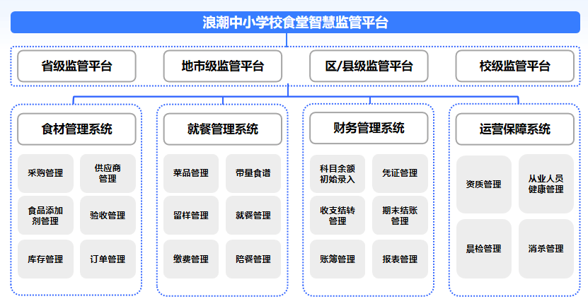 当前,中小学校园食堂正在食物平安取经费规范办理方面的问题日益凸显,经多次后,已激发社会对学生饮食平安、炊事经费规范利用、通明收入及资金平安的深切担心。正在此布景下,出台《中小学校食堂聪慧办理系统扶植指南》,以政策之力鞭策数字化监管全笼盖。海潮易云积极响应政策号召,依托1+4聪慧监管平台,以手艺破题,为校园餐管理供给全流程、可逃溯的智能处理方案。保守办理模式下,校园餐管理仍面对诸多灾题:食材溯源难、经费监管乱、食安过程不成控、多方协同弱等。纸质留痕”的保守模式,转向更高效、更通明、更智能的聪慧化办理。国度已将校园食物平安纳入沉点管理范围,处所层面也敏捷跟进,2025年9月9日印发《中小学校食堂聪慧办理系统扶植指南》,要求2026年笼盖全省80%以上学校食堂,建立省、县、从国度四处所,政策层层递进,都指向统一个标的目的:以数字化、智能化手段实现校园餐全流程监管,让“食材可溯、过程可视、数据互联、风险可控”成为常态。为响应国度关于加强校园食物平安的号召,海潮易云自动担任,推出海潮中小学校食堂聪慧监管平台。该平台基于“1个焦点平台+4大营业系统”的一体化架构,努力于实现从采购到供餐的全链条闭环监管,旨正在建牢平安防地、消弭办理缝隙,以数字化手段沉塑校园食堂办理模式。