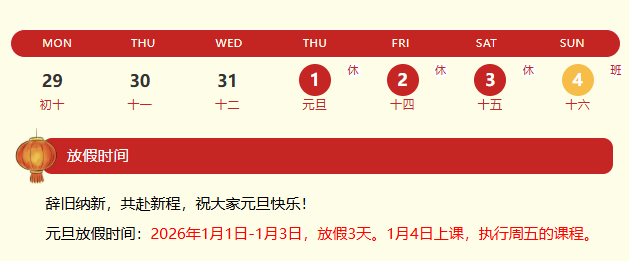 除夕假期即将到来,青岛台东六小学全体教师向您致以诚挚、夸姣的祝愿!按照上级相关要求,现将除夕期间学校放假调休放置如下?。